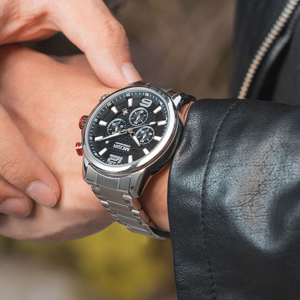 MEGIR Men's Quartz Wrist Watch Stainless Steel Band Chronograph Watches Luminous Waterproof Wristwatch Man Clock Military Watch